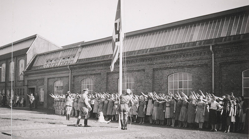 Im Verlauf des Zweiten Weltkriegs wurden in Deutschland aufgrund der Einberufungen zur Wehrmacht die Arbeitskräfte knapp. Das nationalsozialistische Regime beschloss den massenhaften Einsatz von Zwangsarbeitern, Kriegsgefangenen und Häftlingen von Konzentrationslagern. In Hamburg waren es fast eine halbe Million. Die meisten von ihnen wurden aus den von Deutschland besetzten Gebieten der Sowjetunion und Polens deportiert. Während der Kriegszeit stellte die Sternwollspinnerei, die neben der Marzipanfabrik lag, Munition und Granaten her. Zur Firma L. C. Oetker hin gelegen befand sich ein firmeneigenes Zwangsarbeiterlager, geplant für 120 „Zivilrussinnen“, wie es hieß. Im Oktober 1944 gab die Firma 128 Frauen und 96 Männer als Lagerinsassen an. Auch die Marzipanfabrik beschäftigte Zwangsarbeiterinnen und Kriegsgefangene.